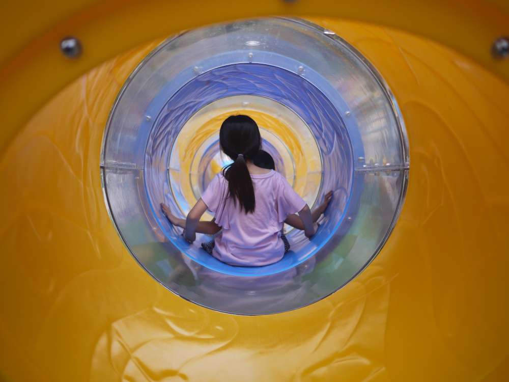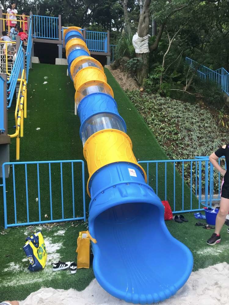 ▼大約10米高透明管狀溜滑梯就在眼前,已經有不少人來玩了