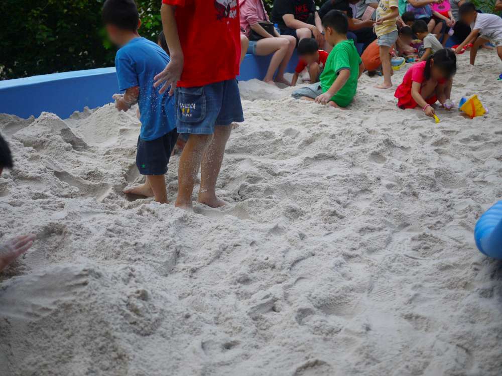 ▼溜下來的緩衝區就是沙坑喔~這兒的沙又細又白,很不一樣喔!