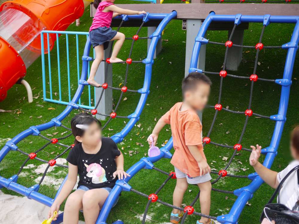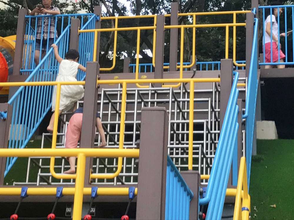 ▼兩座溜滑梯中間是多層複合式攀爬網