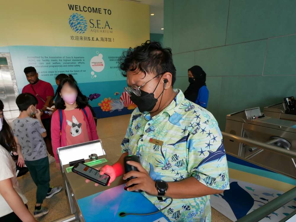 ▼跟很多水族館一樣,新加坡S.E.A. 海洋館也有觸摸池,可以親自去摸一摸海洋生物