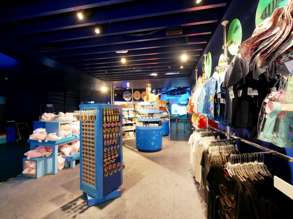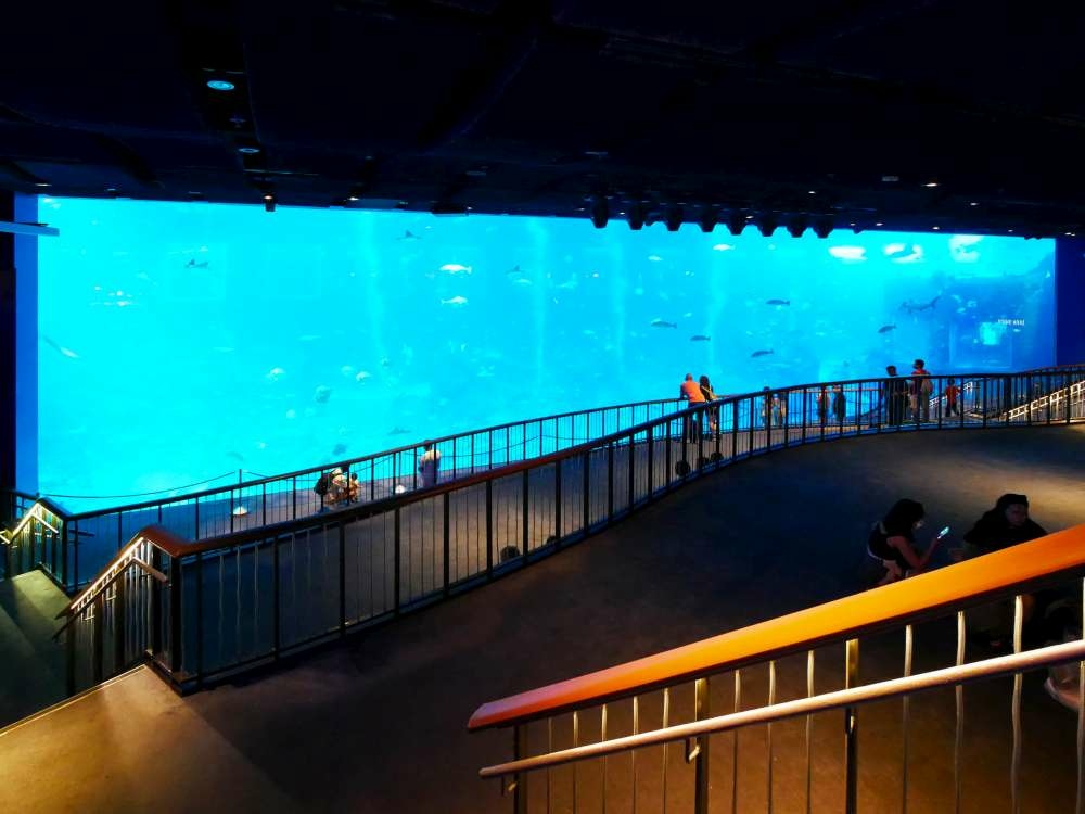 ▼巨大的圓柱體水缸也是新加坡S.E.A. 海洋館的賣場賣點之一