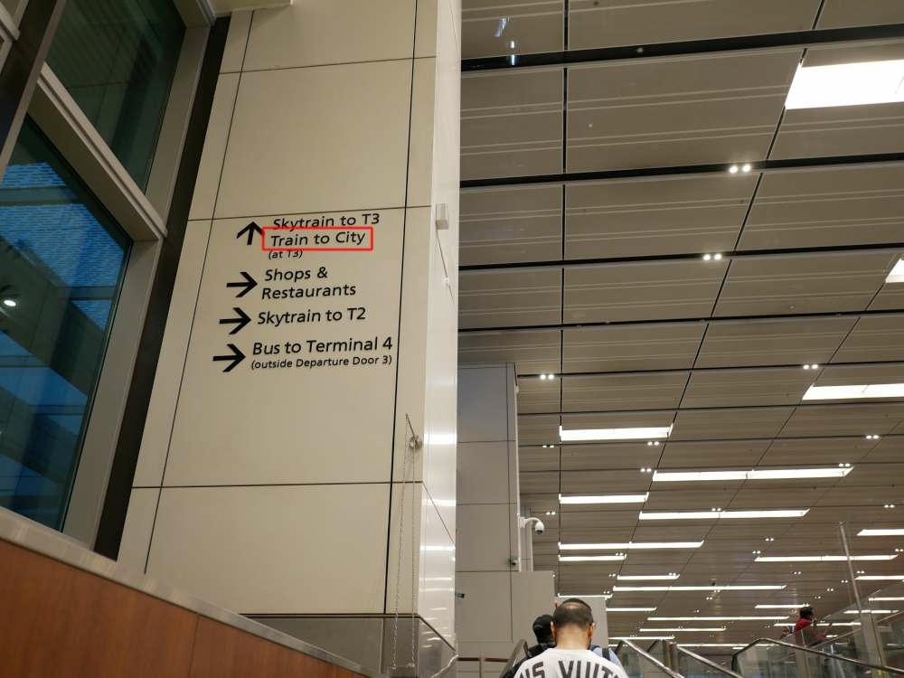 ▼單軌高架列車(Skytrain)到T3下車之後,也不用擔心一樣沿著TRAIN TO CITY的標誌往前走
