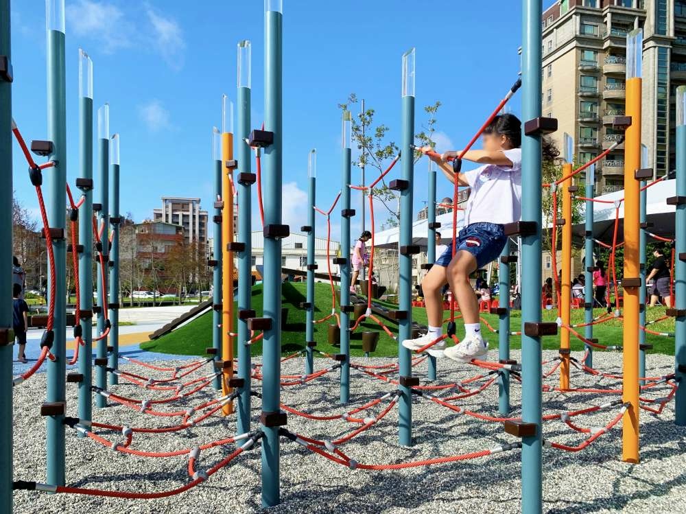 ▼這組遊具是穿梭森林,孩子們可以選擇自己想要的路線進行攀爬