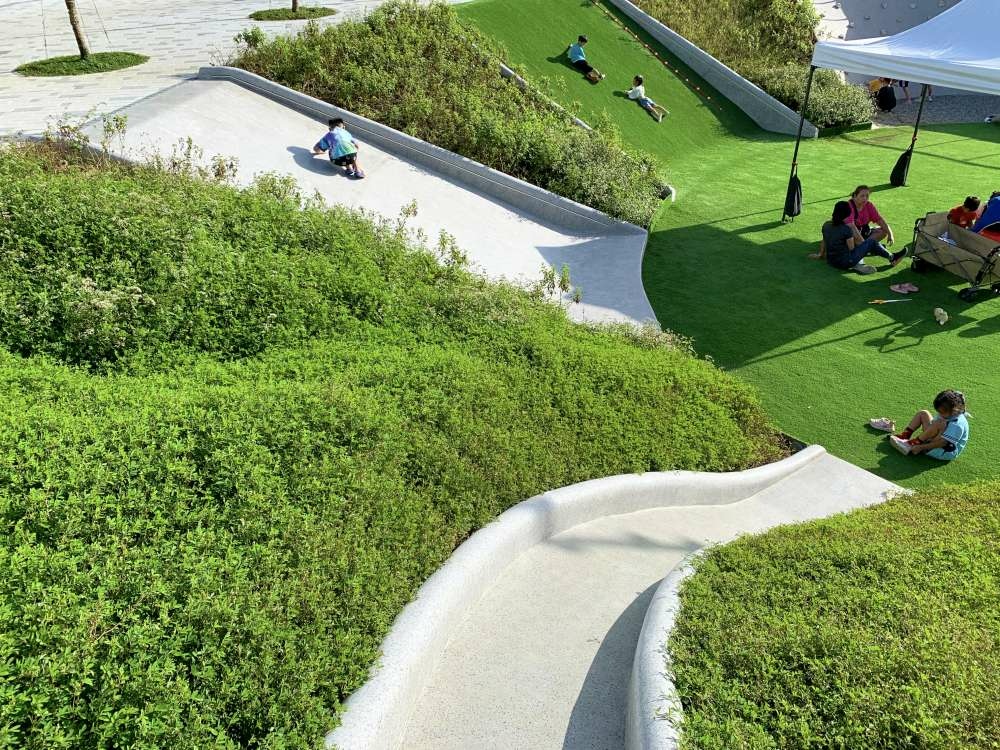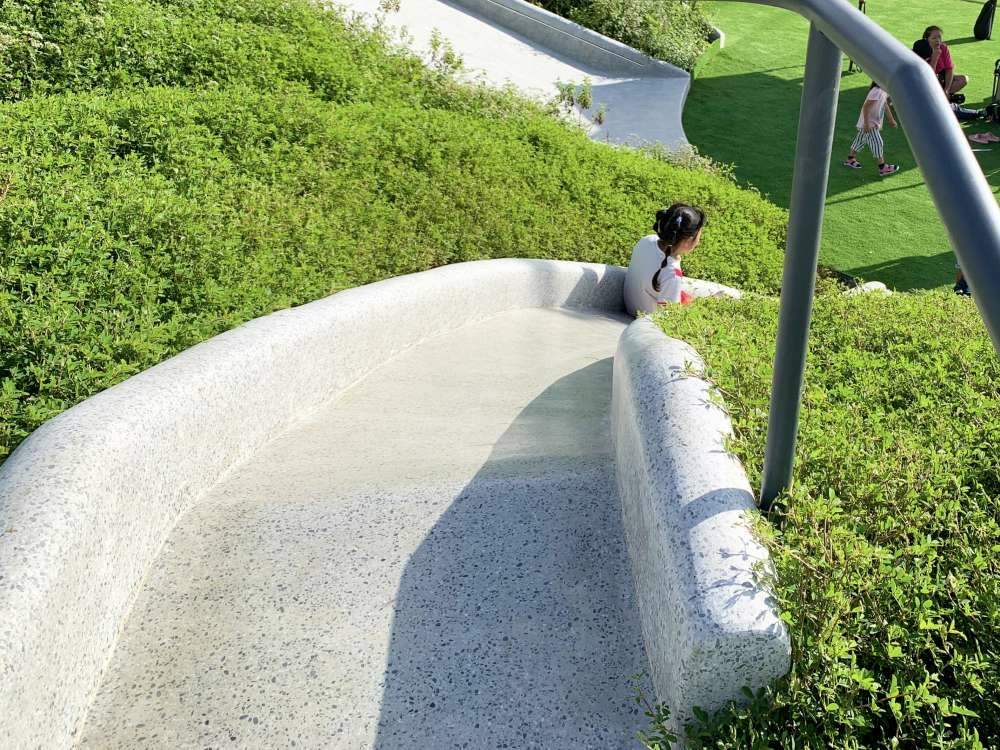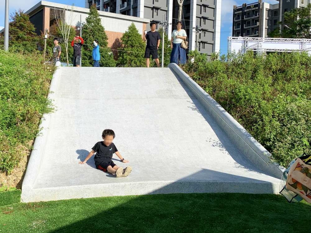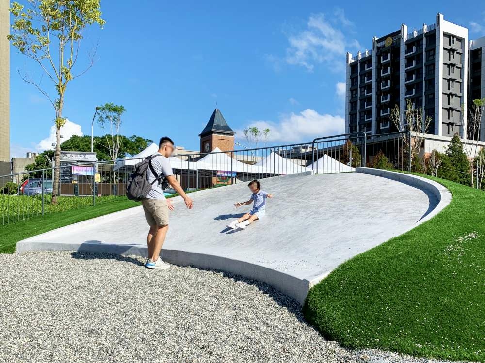 ▼公園也設置了碗公溜滑梯,這張我很喜歡,很有爸爸的愛