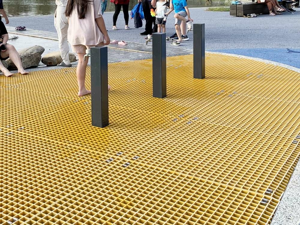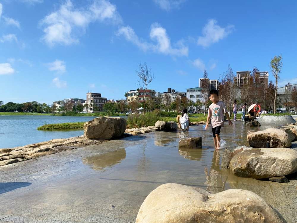 ▼靠近池塘邊設計了戲水池,這個戲水池的水很淺,很適合幼童們玩水