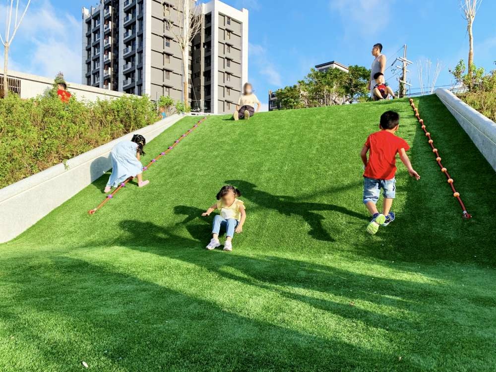 ▼隔壁是滑草坡,如果想要滑得更快,可能要拿出家裡的滑草板